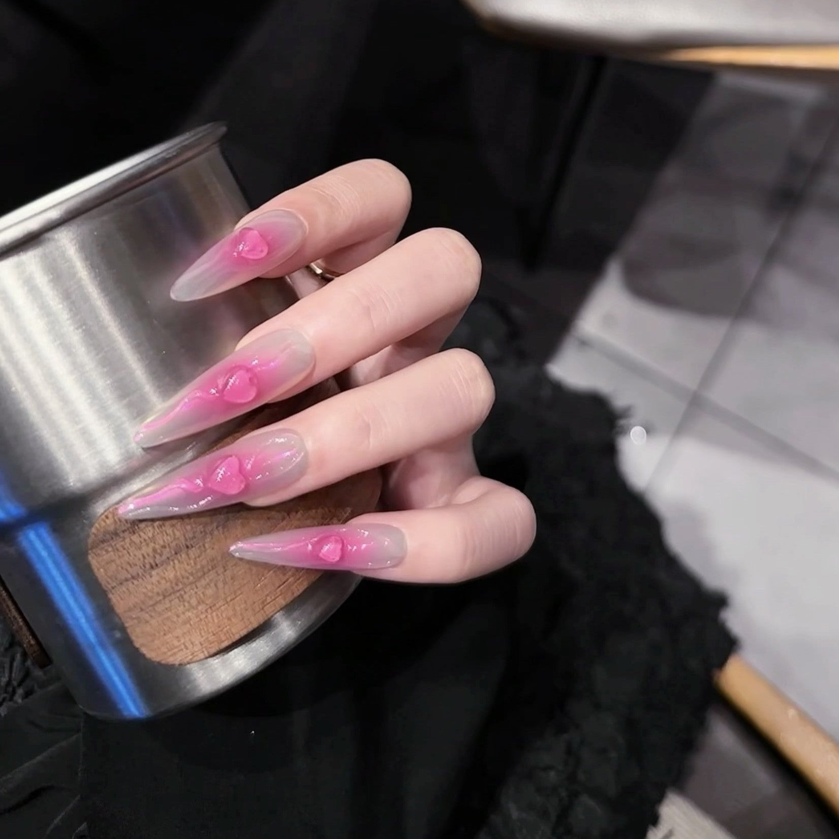 ✨ Clear-to-pink ombré fade with high-gloss pink drips